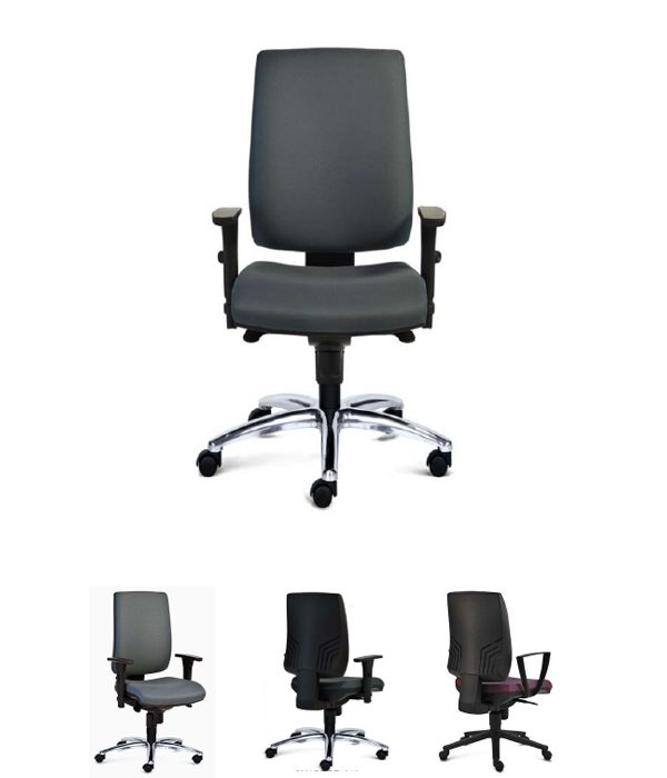 Τροχήλατο κάθισμα με αυξομείωση ύψους, επιλογή μεσαίας ή ψηλής πλάτης με αυξομείωση του ύψους της και με μηχανισμό ανάκλησης ή με μηχανισμό synchron βαρέως τύπου πολλαπλών θέσεων και ασφάλεια επαναφοράς για συγχρονισμένη κίνηση της έδρας και της πλάτης. Η ένταση της κίνησης του μηχανισμού synchron ρυθμίζεται ανάλογα με το βάρος του χρήστη, ενώ υπάρχει η επιλογή μεταξύ ρυθμιζόμενων ή σταθερών μπράτσων.